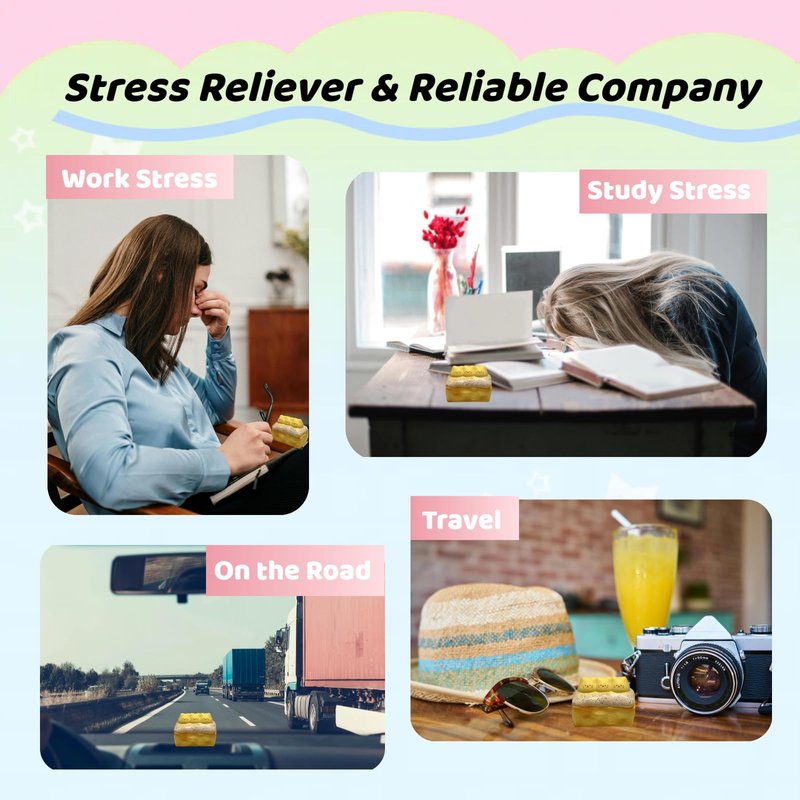 - Stress Relief and Fun - The stress toy is a lovely desk decor and cheers up your work space, accompanying you in anticipation of Monday grind; When frustrated or stuck in traffic, the stress toys adults sit on driver’s side console saying hello to you; the bread squishy is designed for those with extra energy or high stress anxiety levels, promoting a sense of calm, reduce stress, anxiety and increase focus and attention.