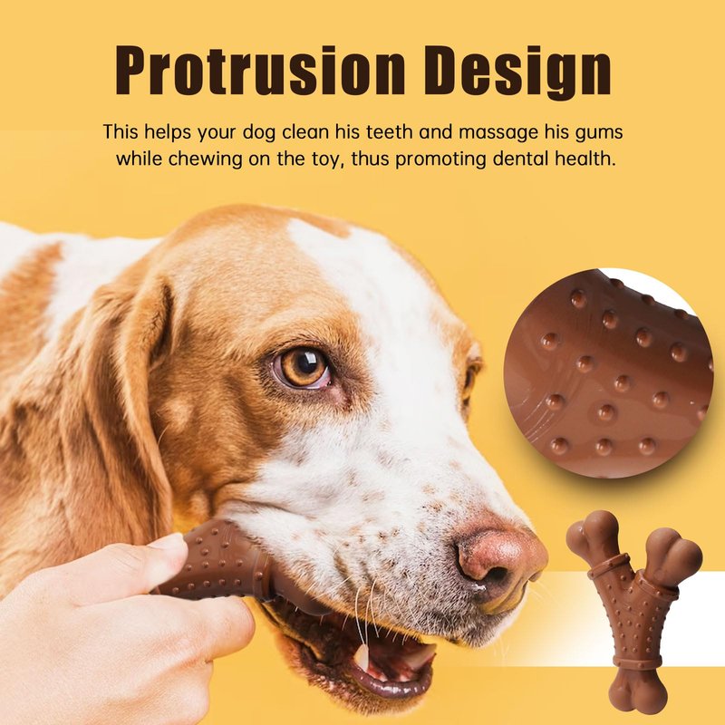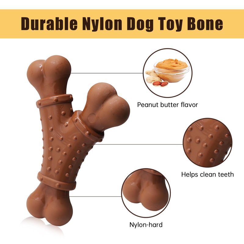 Our chew bones for small dogs are made from organic material. These dog chew bones are free from harmful chemicals, making it an ideal, safe choice for your beloved pet. Nylon bones for dogs can build up the bite force of a dog, keep the dog's teeth stronger. Effectively promote oral health by gnaw or bite, and help reduce discomfort during teething period. Our durable dog toys are full of peanut butter flavor to give your dog the best chew toy they've ever had. Those are dog toys to keep them busy and satisfy them for hours. Small dog toy intended for small and medium puppies. Our indestructible dog toy is created with 3 chewing ends that make it easy for dogs to hold and chew in which they'll feel the joy chewing these ends that are full of flavor. It is the best toy for indoor & outdoor dog interactive training, tracking training, and bite & catch games. It is an easy-to-grip- dog bone toy. Dirt and sand trapped on the surface of a toy can grind down your puppies' teeth, so we make all our toys easy to clean. Plus, our technology means you won’t wash away the all-natural scent they love. Just rinse with warm water to clean and pat dry. A dog’s sense of smell is 10,000x more powerful than a human’s. Dog's experience the world through scent, so we make toys with the all-natural scents they love. Every toy is embedded with peanut butter scent. The fresh bursts of scent that are released with each chew will keep your pup engaged longer than unscented toys. Say goodbye to destructive chewing habits and hello to a happy and healthy pup! Our peanut butter flavored puppy teething toys are crafted with the finest ingredients to ensure a delicious taste that dogs love. Whether you’re looking for tough dog toys for aggressive chewers or small dog toys for your puppy, our Nylon Dog Bone is the perfect choice. Order yours today and see the difference it makes in satisfying your dog’s urge to chew while promoting good oral health.