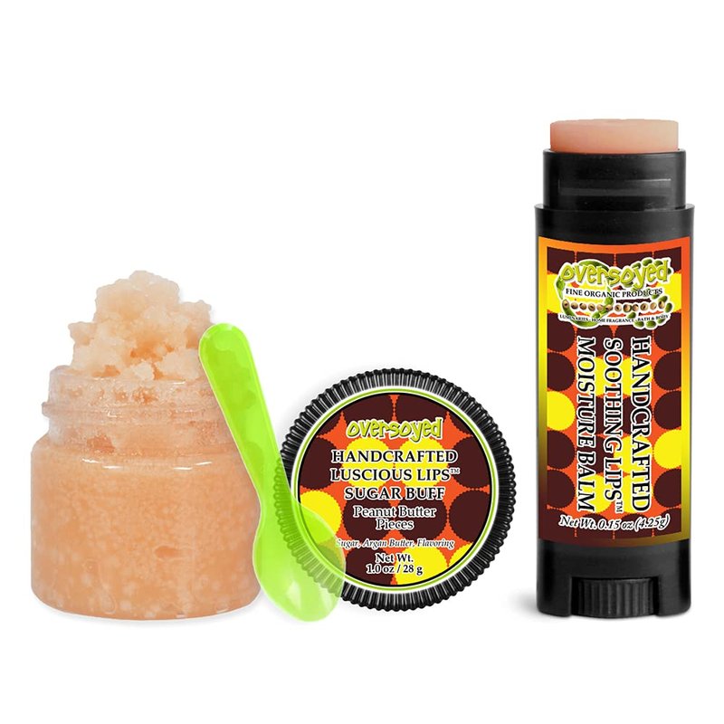 - Once you've achieved soft, kissable lips with our OverSoyed Luscious Lips Sugar Buff Scrub, you'll want to protect them from the elements and keep them moist. Our Soothing Lips Flavored Moisture Balm provides a smooth layer to nourishing comfort while soothing dry lips with lasting moisturization. Our formula of all natural oils and ingredients will leave your lips silky soft.