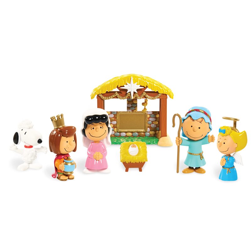 - Figure set includes 7 pieces: Charlie brown, Snoopy, Sally, Lucy, Peppermint Patty and the manger set with cradle