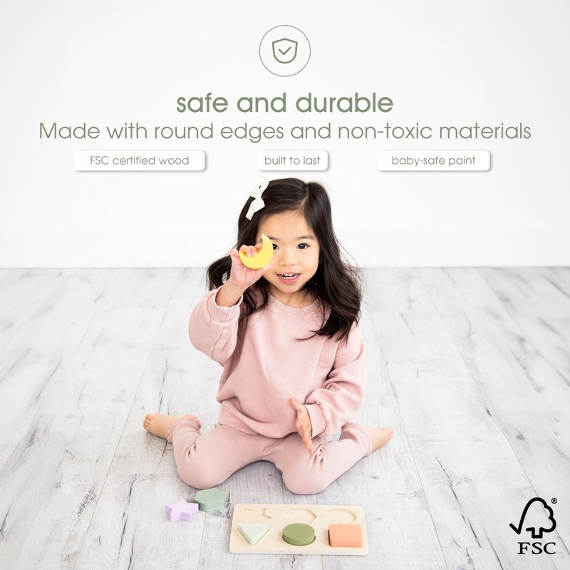- Durable and Earth-Friendly: Crafted with FSC-certified materials and non-toxic, baby-safe paint, this puzzle is built to last. The durable design ensures that the joy of learning continues over time, making it a timeless addition to your child's playroom. Dimensions: 5.75” H x 8.75” W x 0.75” D.