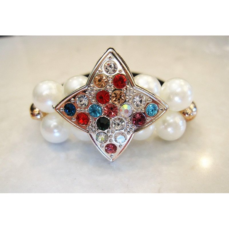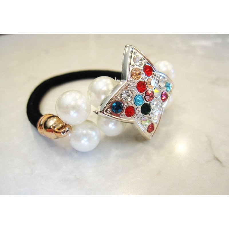 Pearl beads with colorful crystal star hair tie ponytail holders elastic tie