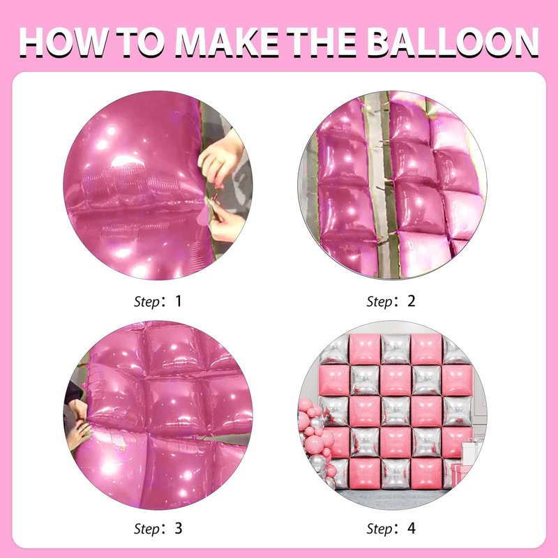 - Easy to Assemble DIY:Effortlessly mix and match to design a personalized celebration space with luxurious pearl pink and silver decorations.Simply inflate the square foil balloons using a balloon pump,then arrange them into a stunning balloon wall.You can design by incorporating latex balloons for you balloons wall kit.Also can complete your creation with multiple sets square balloons to form an impressive balloon tunnel or arch,achieving a breathtaking and customized look for any event.
