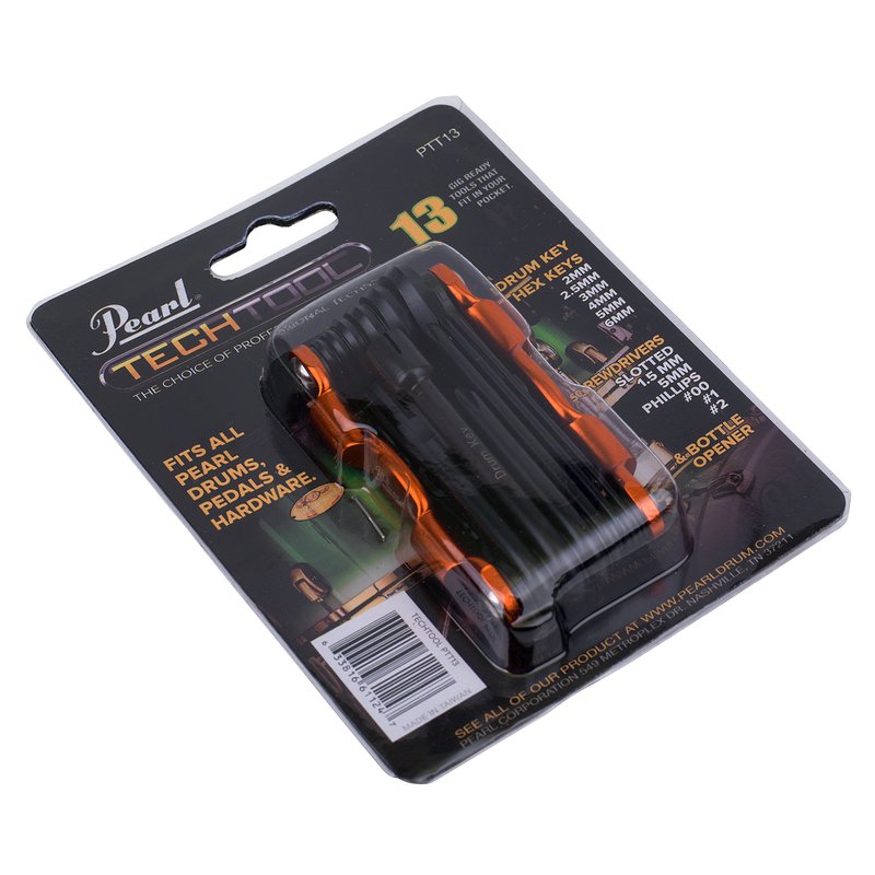 Pearl Tech Tool combination Drum Key and Drum Set Multi-Tool with five Screwdrivers, six Hex Keys and Bottle Opener,
