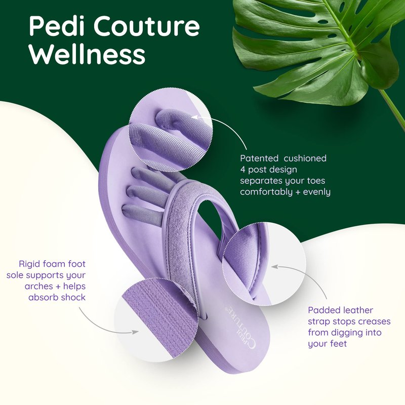 - Designed for maximum comfort, Pedi Couture’s toe separator sandals are an ideal solution for pedicures and yoga. Our sandals are easy to slip on, preventing smudging as well as providing immediate and soothing relief from aching and swelling