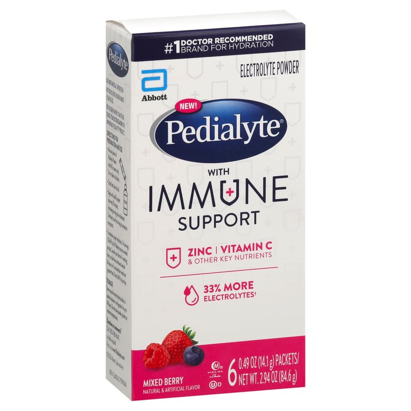 Pedialyte, Electrolyte Drink Immune Support Mixed Berry Berry Powder, 6 Count, 2.94 Ounce