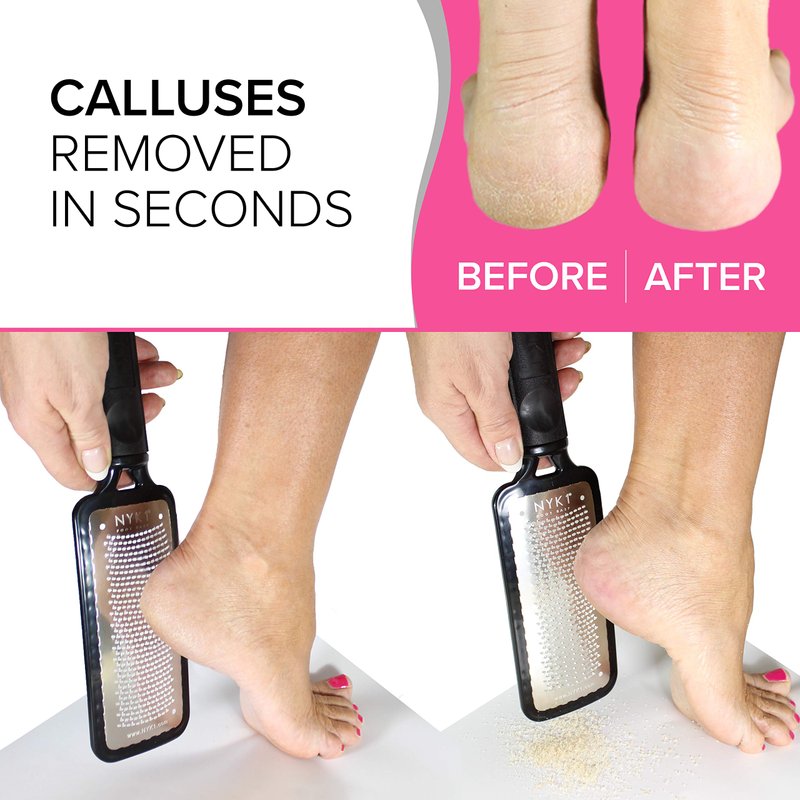Hundreds of perforated grooves are expertly manufactured into the stainless steel plate to be Gentle yet Abrasive on your feet. Follow up with the NYK1 Smoothie to perfect your feet. Ideal pedicure callus remover to give you the pretty feet you've always dreamt of, all thanks to this callus eliminator and foot dead skin remover. You will be amazed at the results!