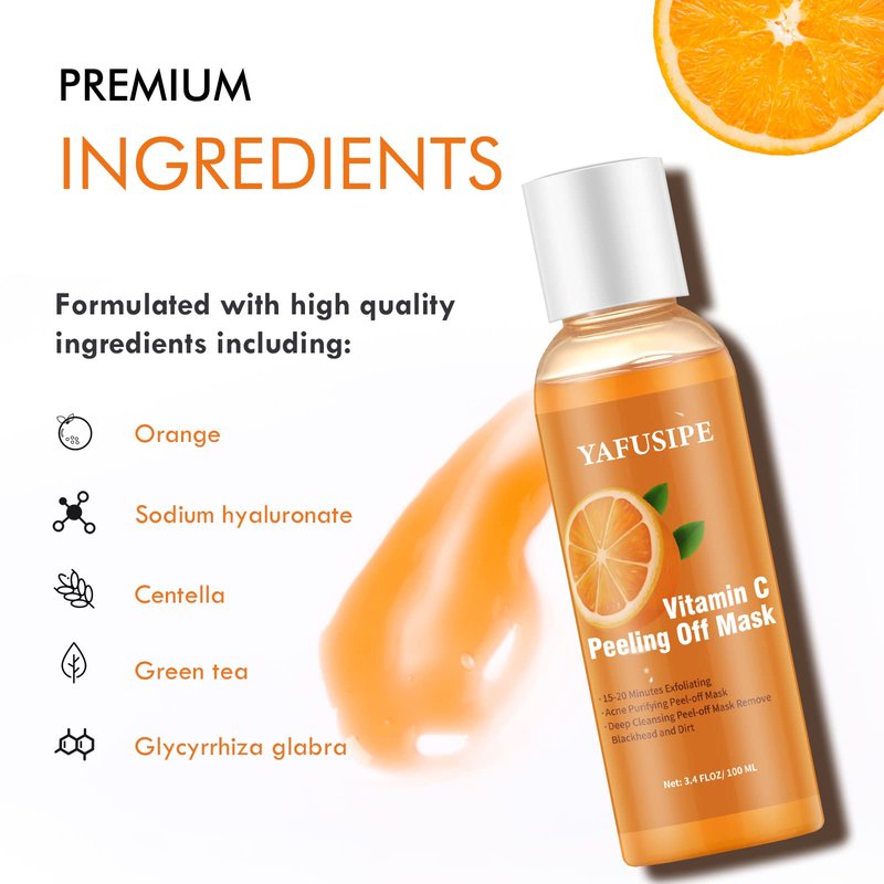 - Purifying Peel-Off Mask With Natural Ingredient: Our Vitamin C Peel-Off Mask is full of natural ingredients that help instantly reveal brighter, more radiant-looking skin, such as the 3-0-ethyl ascorbic (Vitamin C), Sodium Hyaluronate, Centella Asiatica Extract, glycyrrhiza glabra, and so on. Vitamin C and glycyrrhiza glabra brighten and smooth the skin, while Hyaluronic Acid hydrates and plumps another ingredient can repair skin.