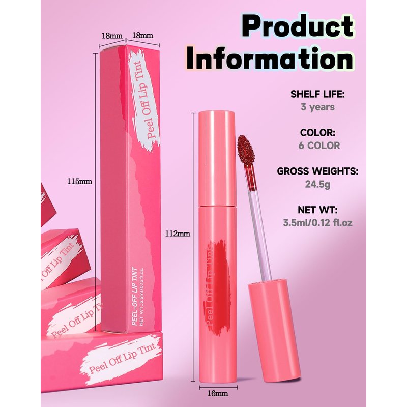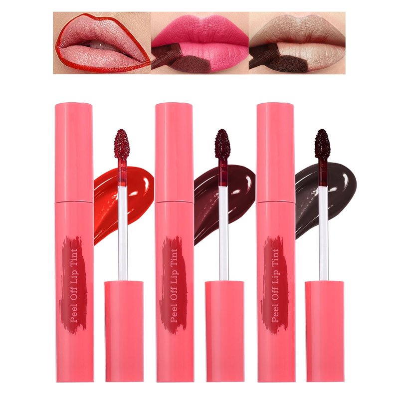 - 3pcs Peel Off Lip Tint Stain- This fun lip gloss forms a film when applied to the lips, simply outline, fill in, dry and peel off for a perfect lip contour without much retouching. Upgraded brush tip design is also suitable for use as a lip liner.