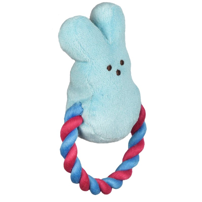 Peeps for Pets Bunny 6 Inch Blue Plush Rope Pull Toy for Dogs | Blue Dog Toy from Peeps, Plush Fabric Dog Toys | Small Squeaker Dog Toy with Rope (FF16024)