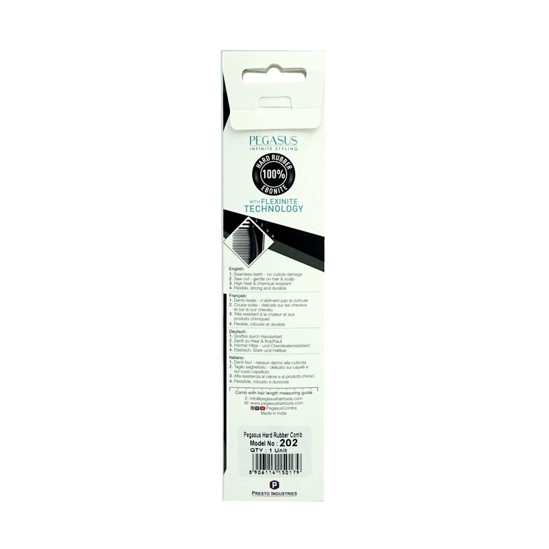 Pegasus 202, 7in Hard Rubber Hair Detangling/Trimmer Course Tooth Comb, Anti-Static, Seamless Teeth, Heat and chemically resistant. Hand crafted from hard rubber, with Flexinite Technology, these amazing combs are temperature and chemically resistant. Professional grade, durable, strong, lightweight, portable won't tangle hair and lose hair. Best for hairstyling, detangling, parting hair, back combing, hair coloring and post styling hair. Thick hair, thin hair, curly hair, all hair types. Smooth, durable and comfortable seamless teeth avoid pulling or tangling hair. It glides through your hair and allows you to shape your hair, adds brilliant shine and luster to dull hair, your hair and scalp will be healthier with regular exposure to the natural oils. Your go to comb for everyday use. Comb Measures 7.5" Wide and 1.25" Tall