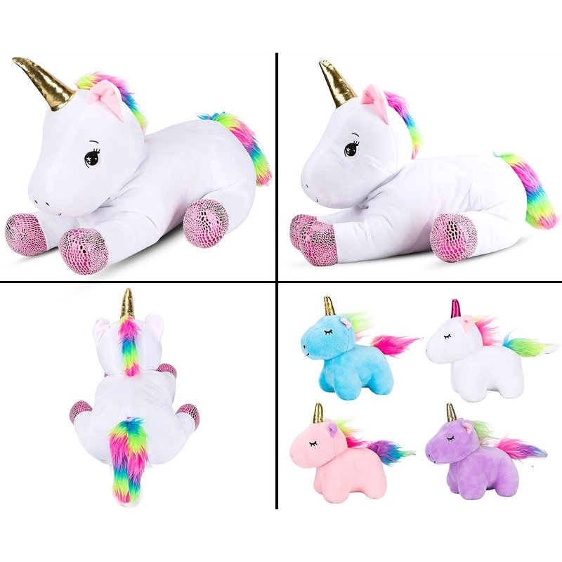 - Unique 5-in-1 Design: Five-in-one unicorn toys are beautifully designed with bright colors and sparkly details,the giant unicorn stuffed animal is white and the rest of adorable baby unicorns are pink blue white and purple,making it an eye-catching addition to any child's toy collection.