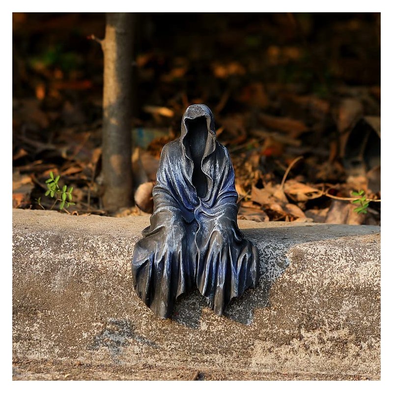 - Spook your guests with the 5.9" Mysterious Black Robe Statue - perfect for outdoor garden decorations! Made from high-quality resin, this figurine features a creepy Master of Secrets sitting in a black robe.