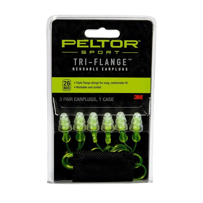 Peltor Sport Tri-Flange Corded Reusable Earplugs, 3 Pair, Noise Reduction Rating (NRR) 26 dB, Comfortable Fit, Ideal For Range, Shooting & Hunting, Washable and Corded, Neon Yellow (97317-10C)