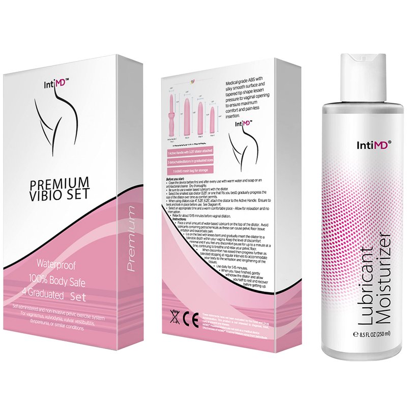 Pelvic Exerciser Set With Free 8oz IntiMD Water Based Personal Lubricant Moisturizer is developed to bring hope to the millions of women with intimate concerns through a self-administered and non-invasive exercise system. Dimensions: Handle: 0.83” Diameter x 3.25” Length (Total Length 7.5”). Step 2 Sleeve: 1.00” Diameter x 4.00” Length. Step 3 Sleeve: 1.25” Diameter x 5.25” Length. Step 4 Sleeve: 1.50” Diameter x 6.25” Length. Included: 1 x Active Handle ~ 1 x Step 2 Sleeve ~ 1 x Step 3 Sleeve ~ 1 x Step 4 Sleeve ~ 1 x Discreet Storage bag ~ 1 x 8oz Water Based Personal Moisturizing Lubricant (safe for all silicone or plastic devices). * 2 x AA Required for Active Mode (Not Included). **These statements have not been evaluated by the Food and Drug Administration. This product is not intended to diagnose, treat, cure, or prevent any disease. IntiMD Pelvic Exerciser is not sold as a medical device. Effectiveness of the exerciser varies from individuals.**