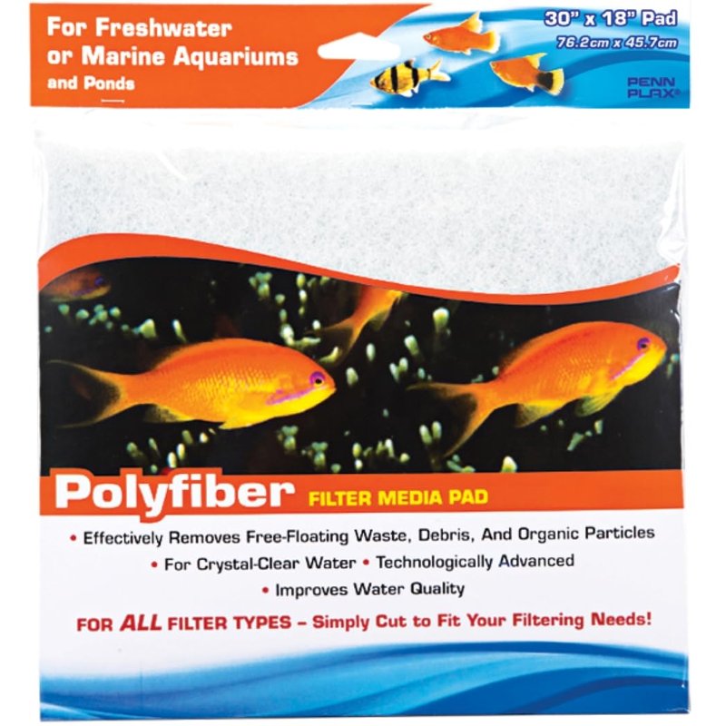 PENN-PLAX Poly Fiber Aquarium Filter Media Pad – Easy to Cut into Any Size Your Filter Requires – 30” x 18”