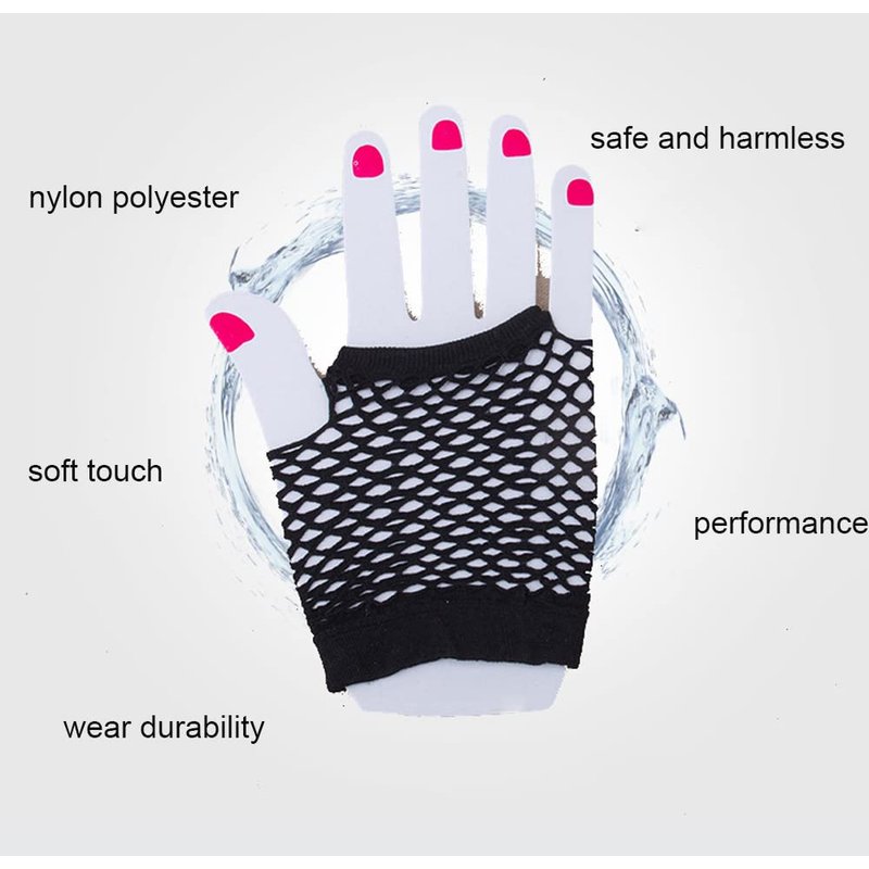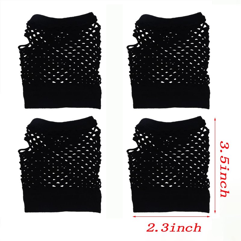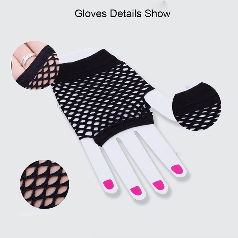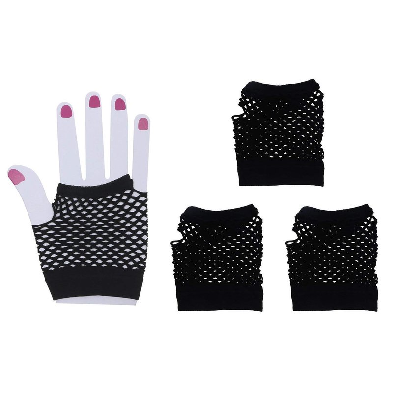 PENTA ANGEL 2 Pairs Black Nylon Fingerless Fishnet Gloves Wrist Stretch Mesh Gloves for 80's Theme Party Women Costume Accessories(Short-Black)