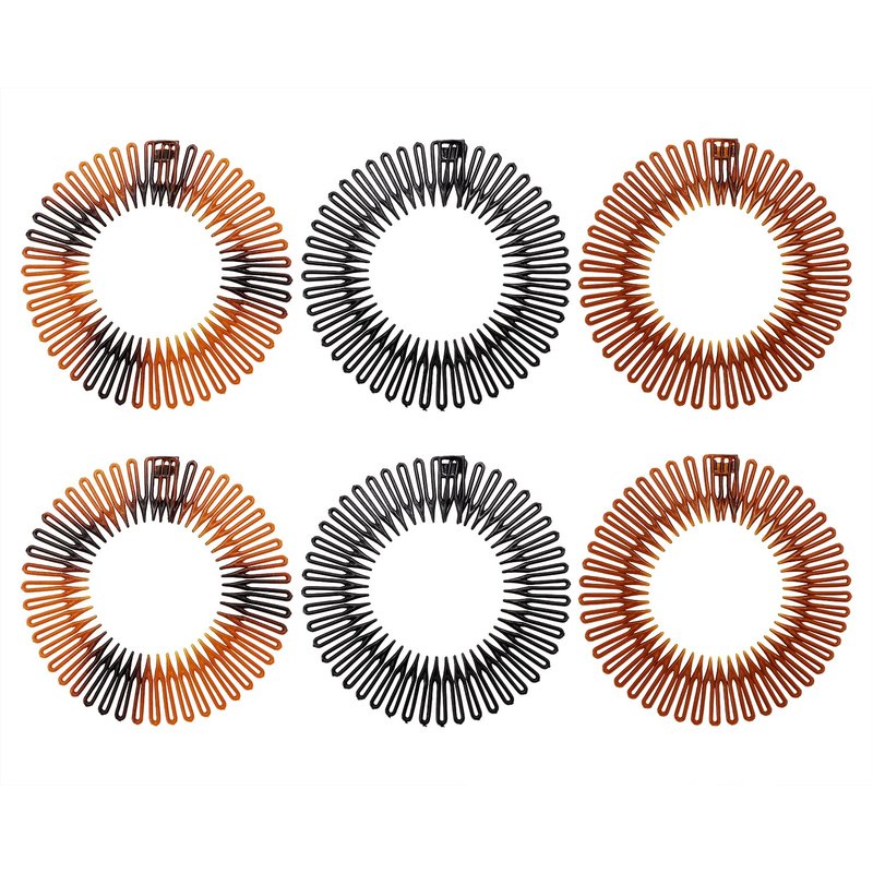 PENTA ANGEL Stretch Hair Combs 6Pcs Flexible Plastic Full Circular Circle Comb Headband Hair Wrap Holder Hairband for Women (Classic Style)