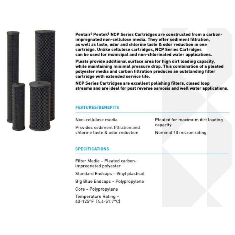 Pentair Pentek NCP-10 Carbon Water Filter, 10-Inch, Under Sink Non-Cellulose Carbon Impregnated Pleated Filter Cartridge, 10" x 2.5", 10 Micron