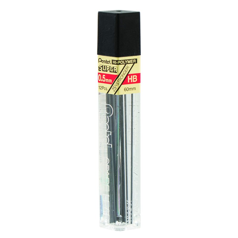 Pentel Super Hi-Polymer Lead Refills, 0.5mm, 12 Leads per Tube, Black (C505-HB)