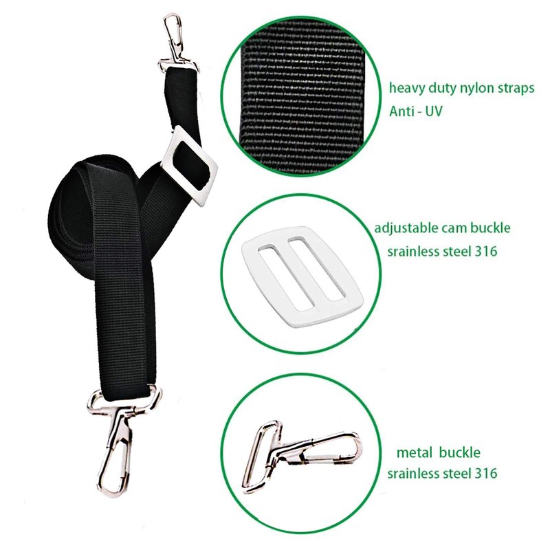 - All stainless steel snaps hooks and sliders, with 25mm (1 inch) width nylon webbing, Corrosion Resistant, more durable than other straps,last for years.