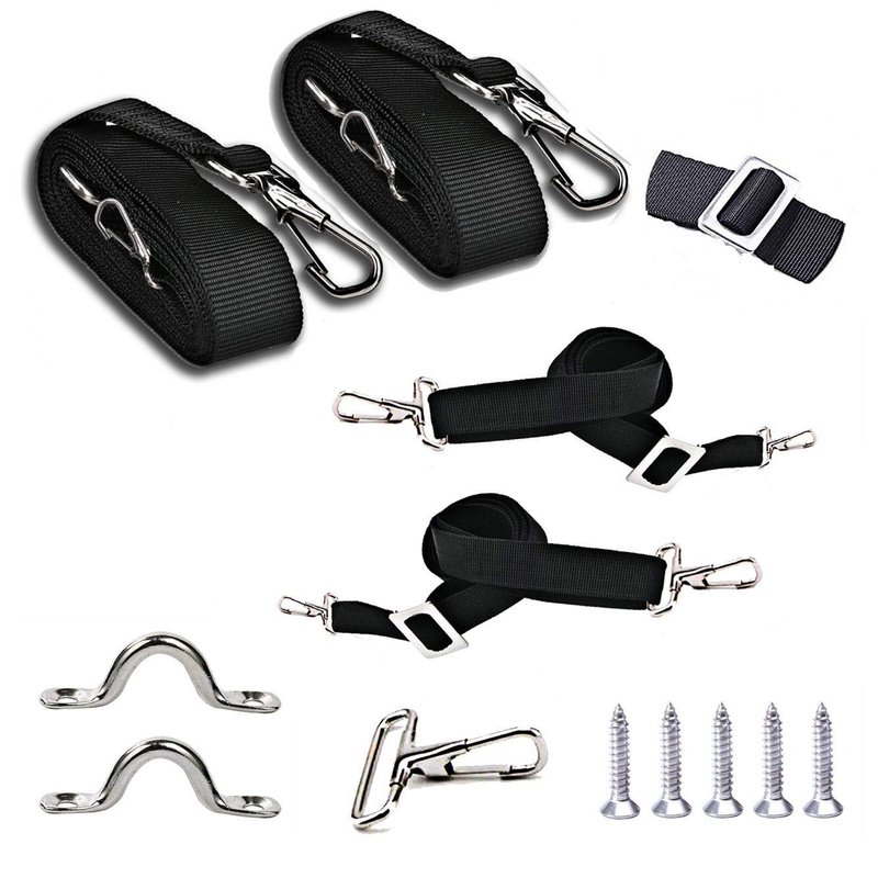 - Package includes:2 pcs marine premium top straps with two side snap hooks and 2 pcs stainless steel eye straps and 2 pcs stainless steel hook clips and 4 pcs screw to use for people who want double hook clip on both ends and not need to other place to buy the hardware.