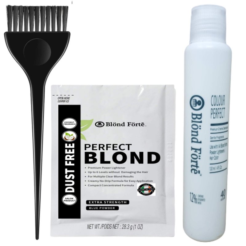 Perfect Blond Hair Bleach Toner Lightener Dye Lightening Kit 120 ml 40 Vol Developer & Brush Gloves - Made in Italy by Blond Forte (Blue Powder)