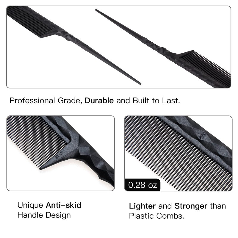 - Anti-static Carbon Rattail Combs, reduce flyaway and hair frizz, easy for combing, parting and braiding of wet or dry hair.
