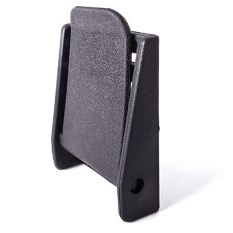 - Black nylon bag strap buckle.
