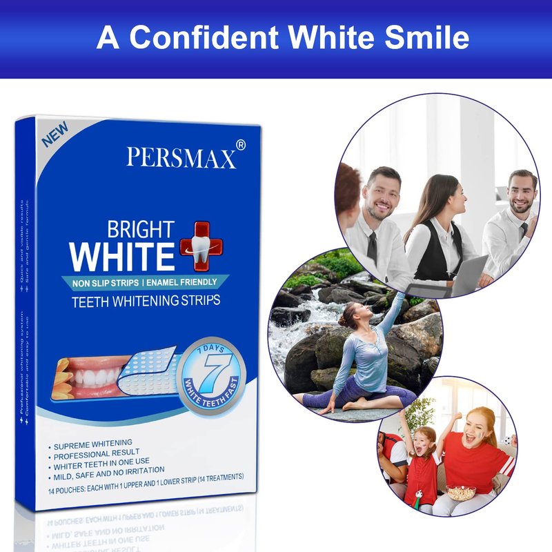 - Perfect Whitening Strips Kits: Contain 14 sets of teeth whitening strips (usable for 14 days), a tooth color comparison chart, and a user manual. PERSMAX attaches great importance to the user experience, if you are not satisfied with the product or need other help, please contact our online customer service, and we will do our best to serve you.
