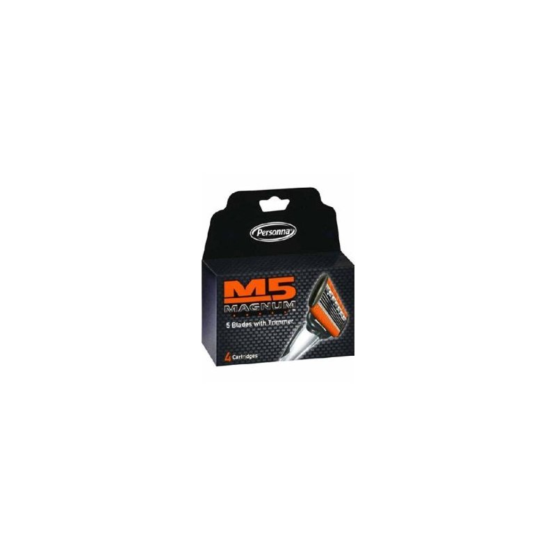 Personna, M5 Magnum razor Blades with Trimmer, 24 Cartridges - 6 packages of 4 Cartridges for a total of 24 Cartridges