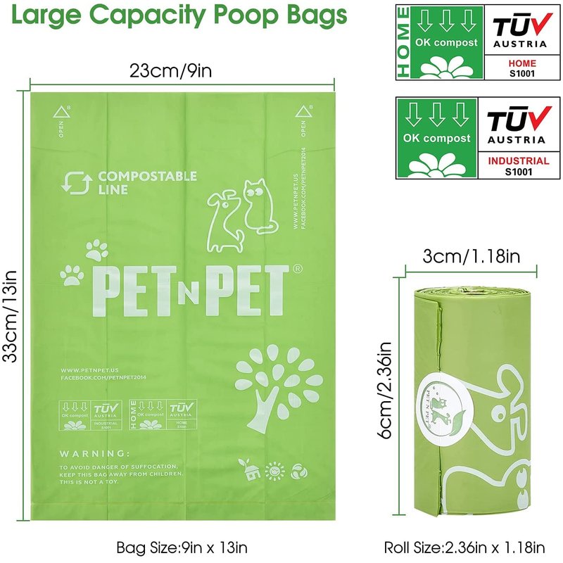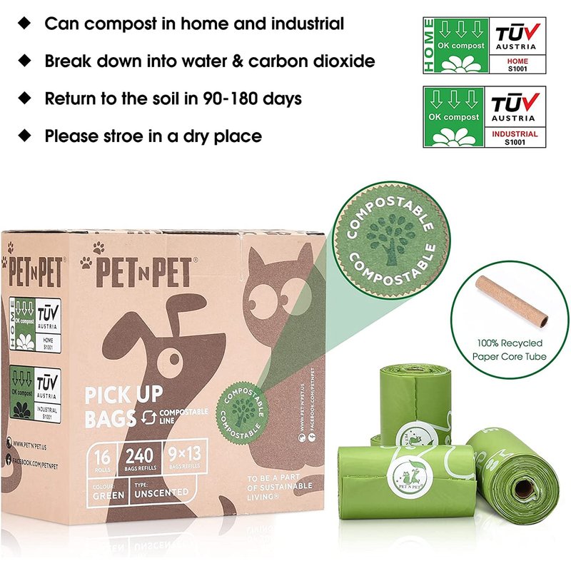 Pet N Pet Poop Bags For Dogs, 240 Counts Compostable Dog Poop Bags Rolls, Dog Bags For Poop, Thick Dog Poop Bag Rolls, Doggy Poop Bags, 100% Leak-proof Easy to Use Pet Poop Bags