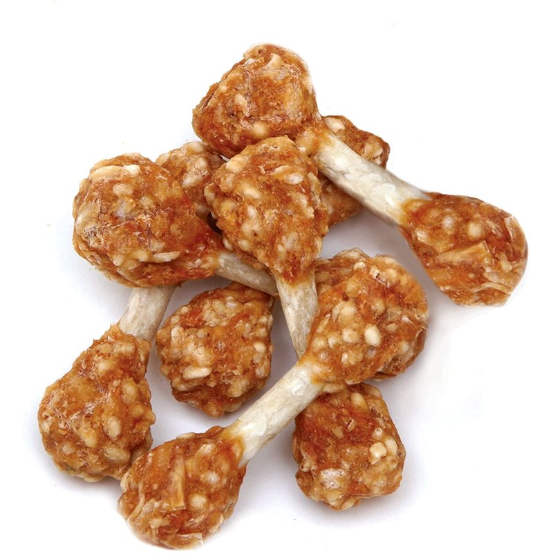 - Ingredients - Tantalizing treat made from naturally delicious chicken breast fillets and brown rice formed into crunchy, bite-sized balls on a chewy rawhide stick.