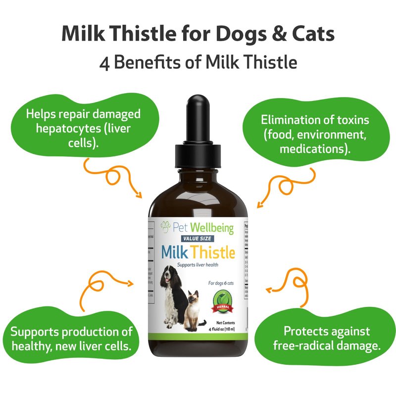 Pet Wellbeing Milk Thistle for Dogs & Cats - Supports Liver Health, Protects Liver - Glycerin-Based Natural Herbal Supplement - 4 oz (118 ml)
