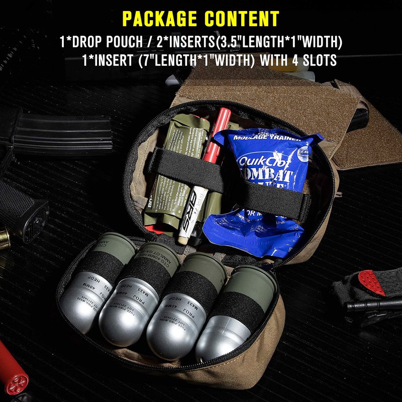 - Constructed by high quality 500D Cordura Nylon material. The tactical drop pouch with two-way YKK zippers, you to quickly zip the military pouch shut from either both sides.