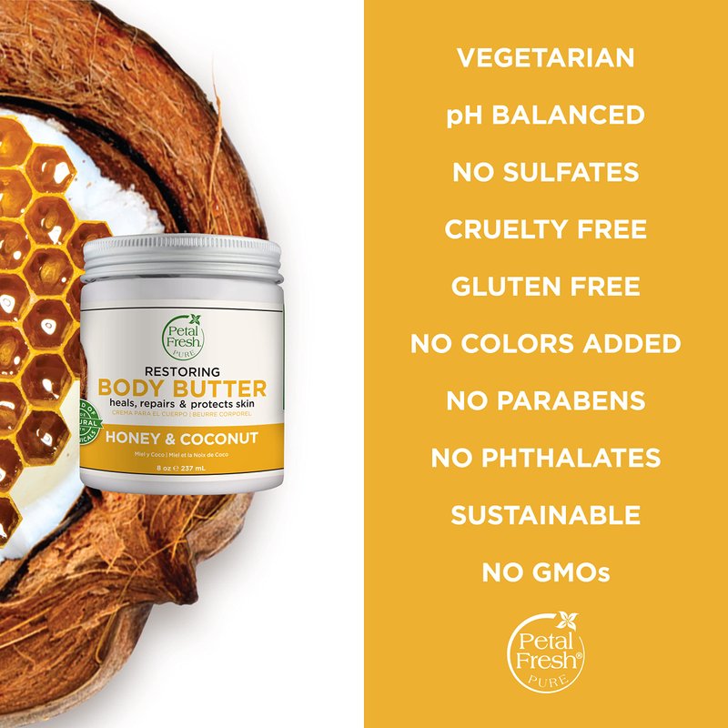 Petal Fresh Pure, Restoring Body Butter, Heals, Repairs & Protects Skin with Honey & Coconut Oil, 8 Fl oz