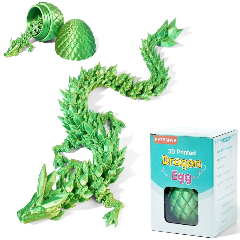 PETBSNVB 12" 3D Printed Dragon in Easter Eggs, Easter Basket Stuffers, Crystal Dragon Surprise in Eggs, Articulated Dragon, Dragon Fidget Toy, Home Office Decor Executive Desk Toy (Laser Green)
