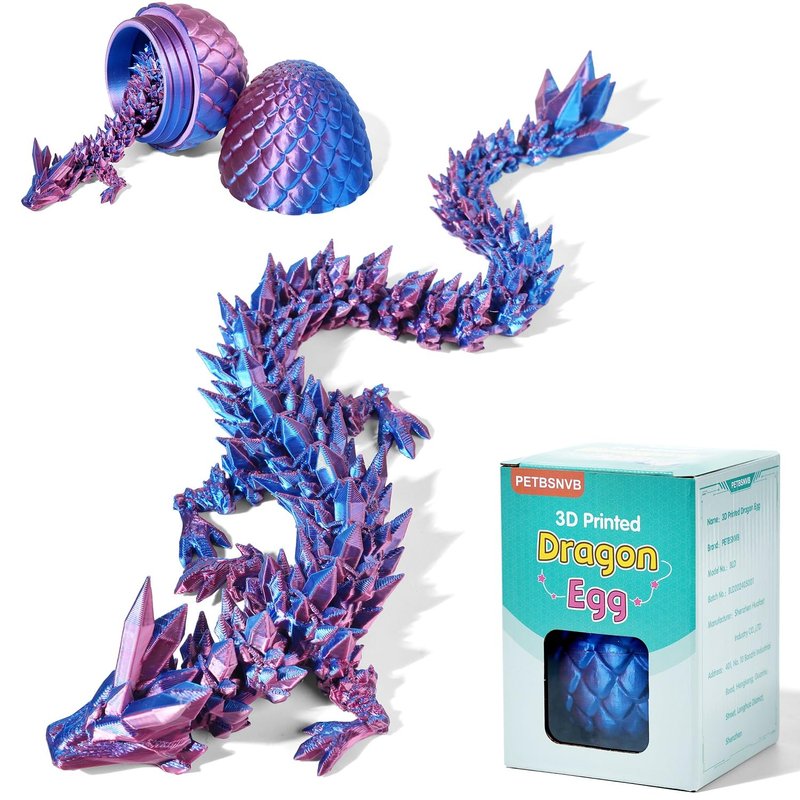 PETBSNVB 12" 3D Printed Dragon in Easter Eggs, Easter Basket Stuffers, Crystal Dragon Surprise in Eggs, Articulated Dragon, Dragon Fidget Toy, Home Office Decor Executive Desk Toy (Laser Purple)