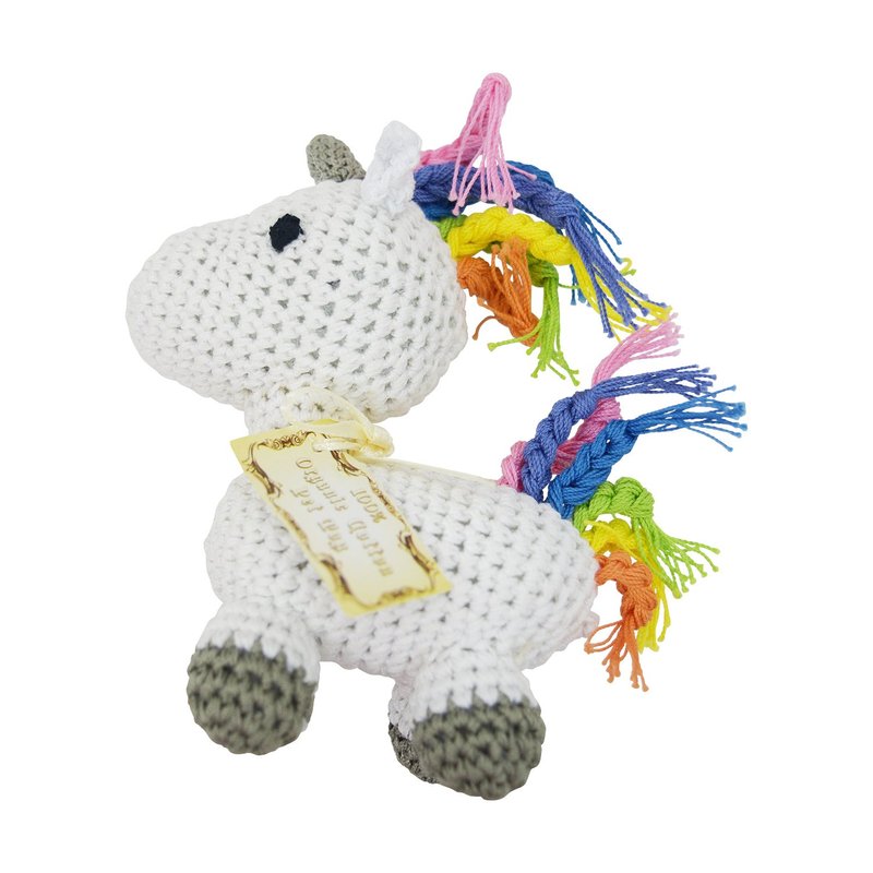 PETFLY Dog Teeth Cleaning Cotton Crochet Squeaky Dog Toy for Small Dog - Magic Unicorn