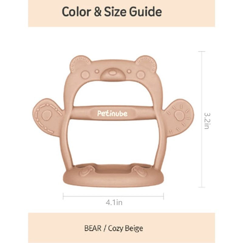 PETINUBE Anti-Dropping Silicone Baby Wrist Teether Soothing Pacifier for Infants 3+ Months Babies, Pack of 1, Made in Korea (Bear-Cozy Beige)