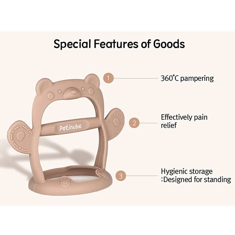 - Hygienic Stand Design: When not in use, the teether can stand upright, maintaining hygiene and making it easily accessible.