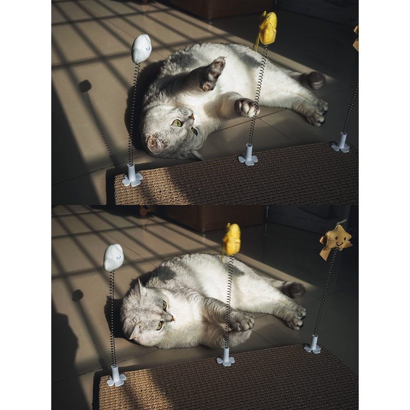 - 【HIGHLY RESILIENT SPRING】 The strong and flexible spring will keep the teaser swinging back and forth when cats touch it. The spring is 1mm thick to ensure its durability and effective rebound after the cat bends the spring. Making this chasing game interesting.