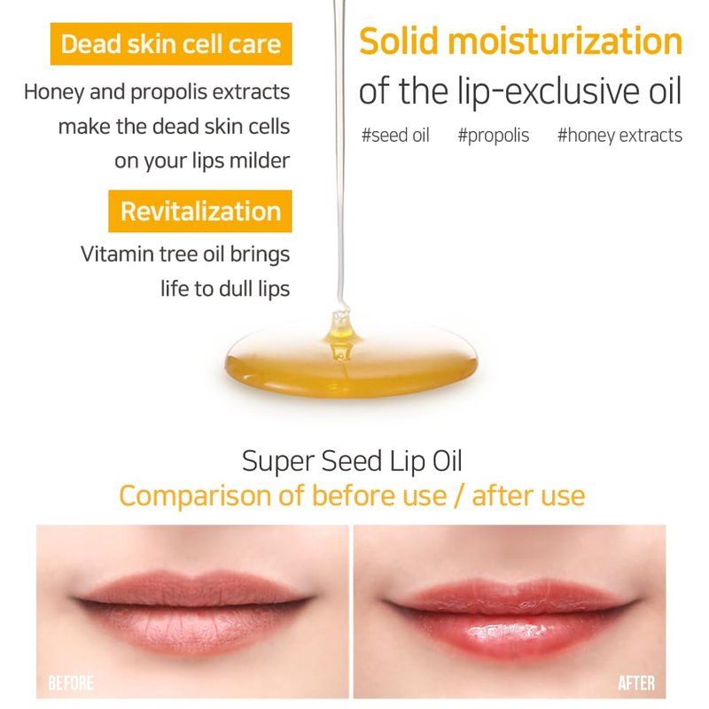 PETITFEE Lip Oil Super Seed | 0.10 Oz | Glass Lip, Healthy Lip Care, Moisturizing Lip Oil with Honey, Propolis, Herbal Oil, Glowy, Revitalizing, Calming Lip, Non-sticky, Non-artificial Colors