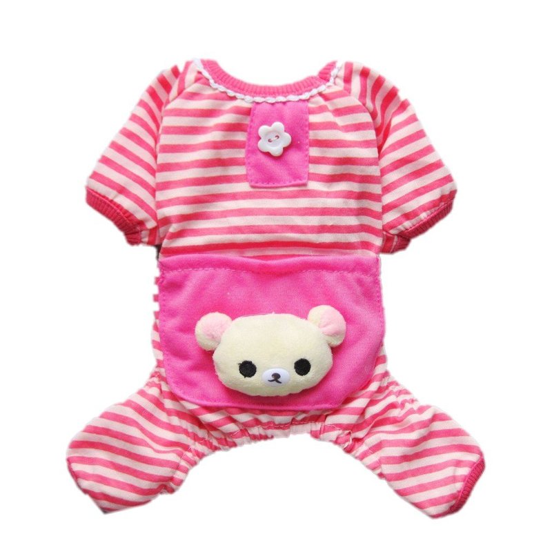 Petparty® Cute Bear Comfy Dog Pajams Dog Shirt Stripes Dog Jumpsuit Pet Dog Clothes (Pink, XL) Back 14" for Small Dog Only