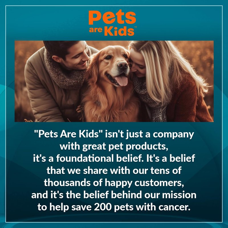 - Uncompromising Quality - At Pets Are Kids Too, we take pride in producing premium-quality items sourced from natural ingredients and proudly made in the USA. We believe our Pets are Kids too! As such they should be pampered with thoughtfully made products like ours. We love our pets, so we donate a percentage of proceeds from every sale to pets with cancer!