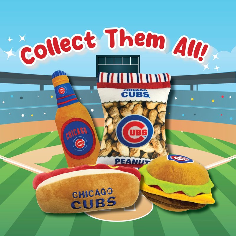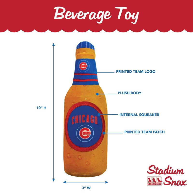 Pets First MLB Chicago Cubs Stadium Beer Bottle Plush Dog Toy-Cutest Plush Toy for Dogs & Cats with Inner Squeaker & Premium Embroidery of Baseball Team Name & Logo