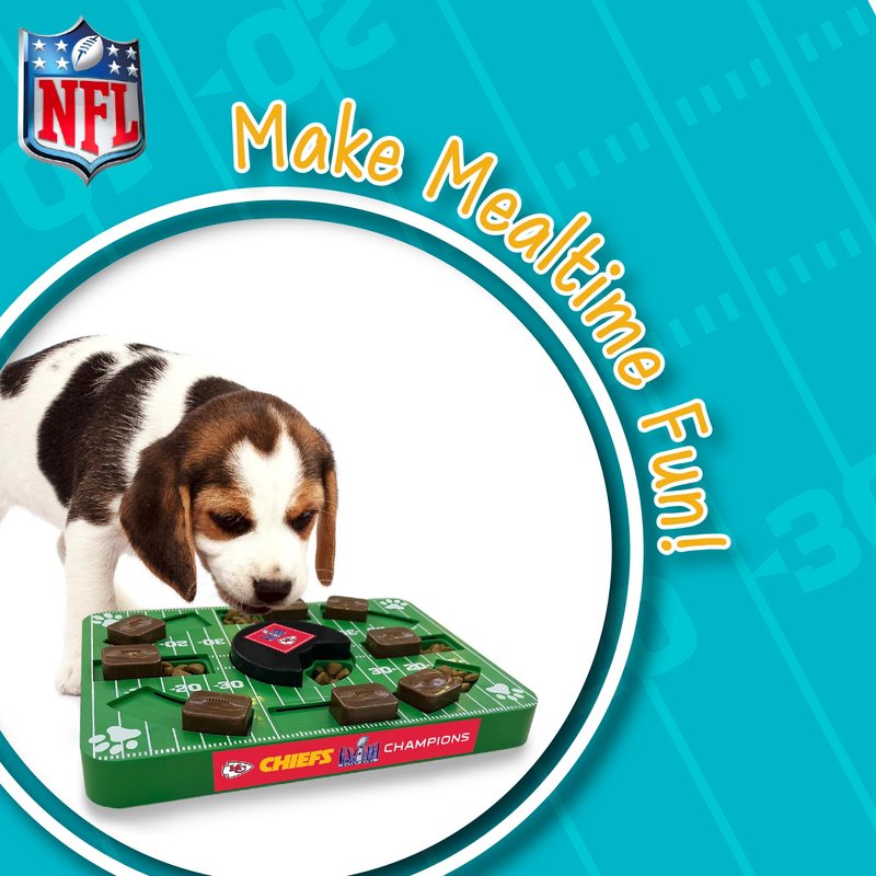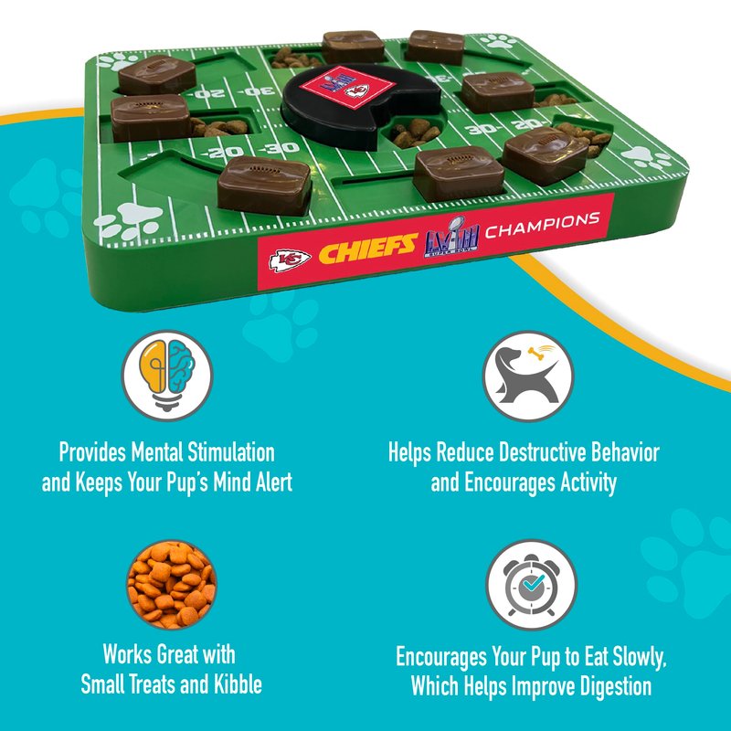 - Prevents Boredom: Keep your dog entertained and engaged with this interactive toy, designed to alleviate boredom and provide mental stimulation. The Pets First NFL Superbowl Champ Puzzle Treat Toy Feeder is great for I.Q. Training as well.