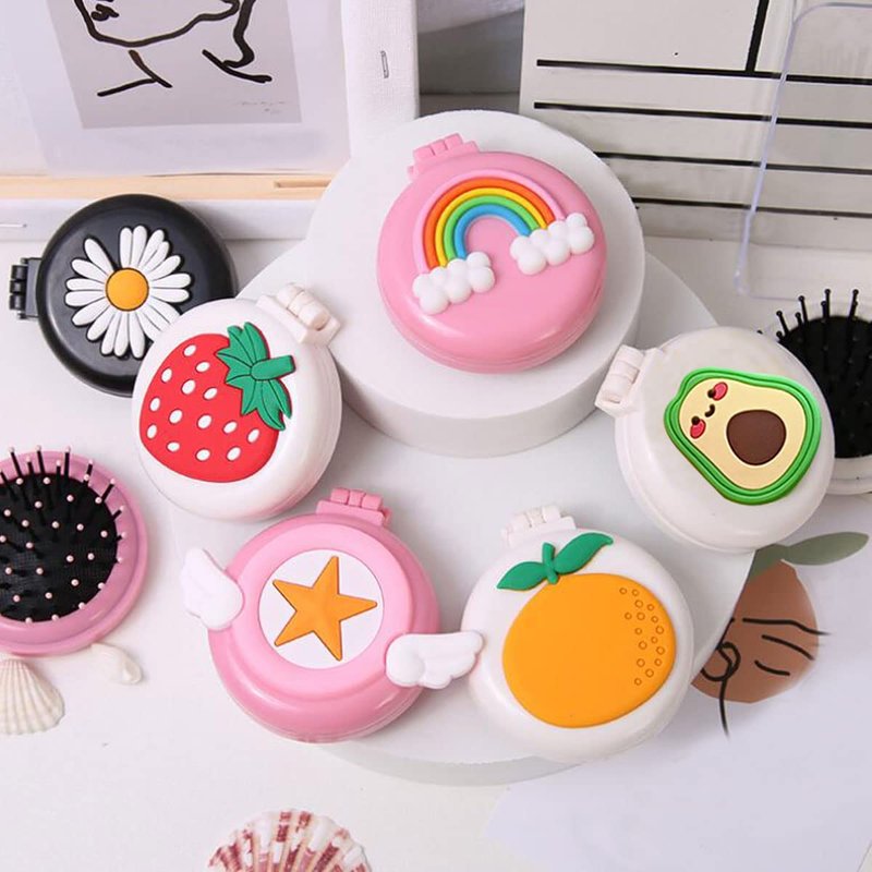 - Package Includes:You will receive 6pcs of cute mini round hair comb in mixed colors and styles,mirrors and hair combs are packed in plastic boxes,various styles and bright colors,folding hair brush with mirror enough for you to replace or give away