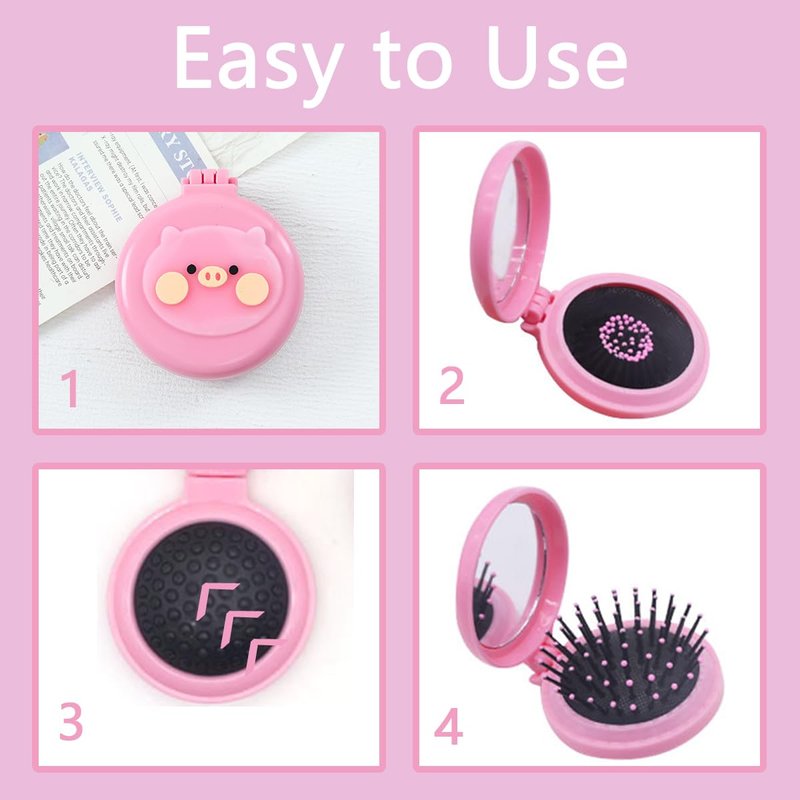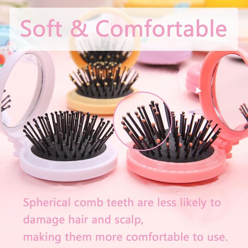 - Best Gift Choice:Compact hair brush with mirror is exquisitely crafted,cute in style,and colorful,making it perfect as a gift for your family or friends.Foldable mirror hair brush can also be used as a small gift to give to guests at parties