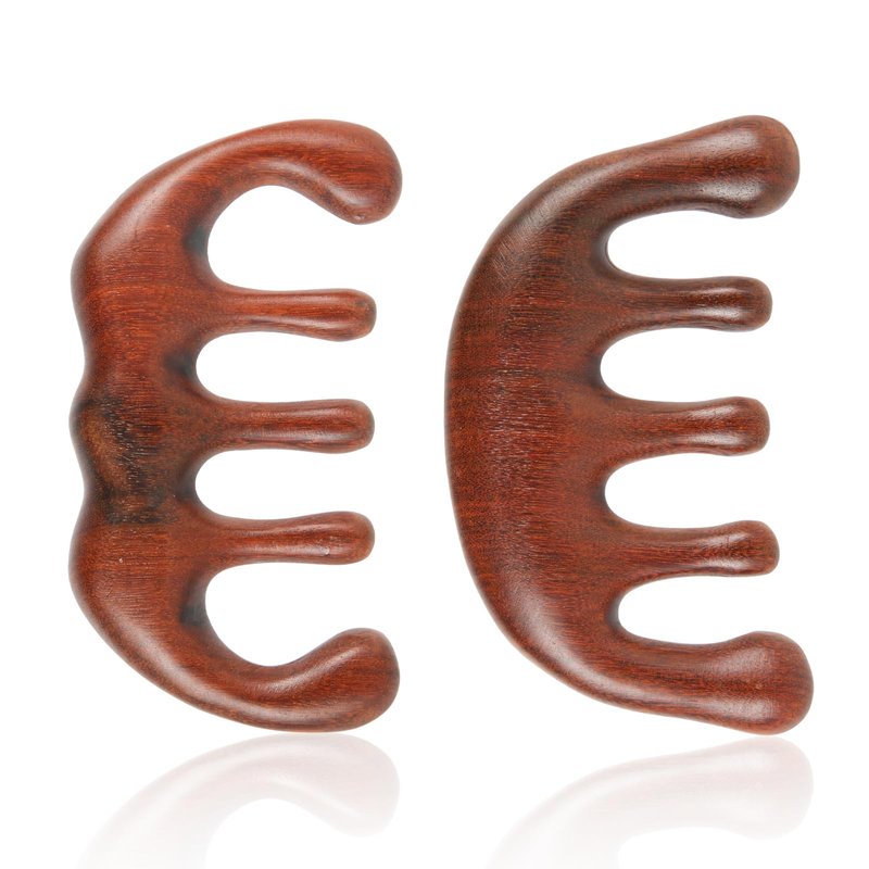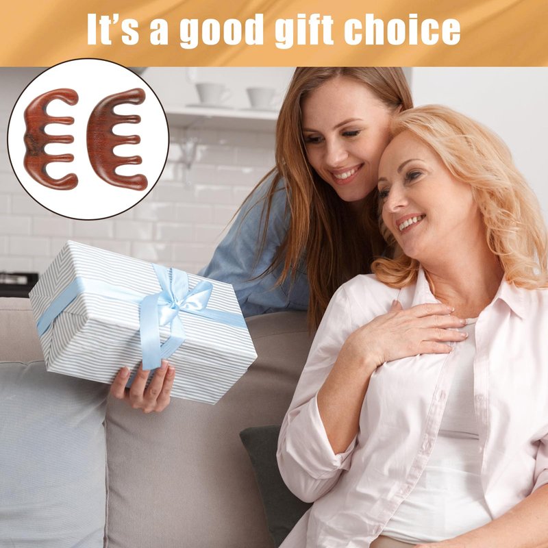 PEUTIER 2pcs Natural Wooden Wide Tooth Combs, Anti-Static Sandalwood Head Massagers for Hair Growth, Gua Sha Scalp Stimulators for Women (Style B)